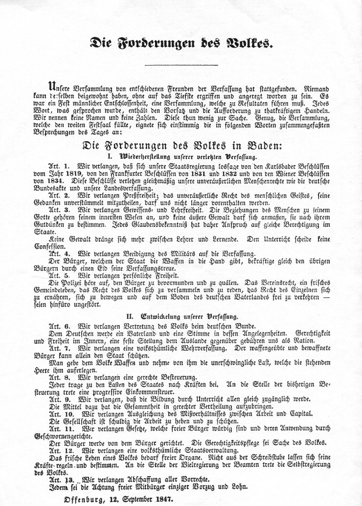 Lesen Sie hierzu "Die Forderungen des badischen Volkes 1847"